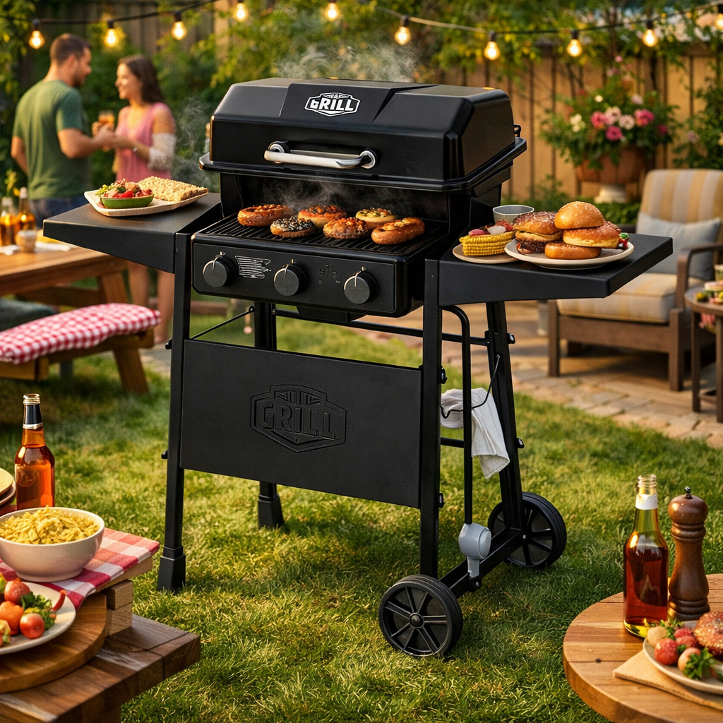 3 Burners Portable Propane Grill Barbecue Grill Stainless Steel Gas Grill in Black